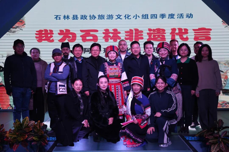从刺绣服饰到狮虎面具,从古老技艺到现代文创,委员们不仅“讲非遗”,更“演非遗”“秀非遗”,在动态展示中让沉睡于乡野的非遗项目焕发出时代光彩,委员们从各行业的精英,摇身一变成为舞台上的展演者,通过生动的展示,让石林非遗文化“活”起来。